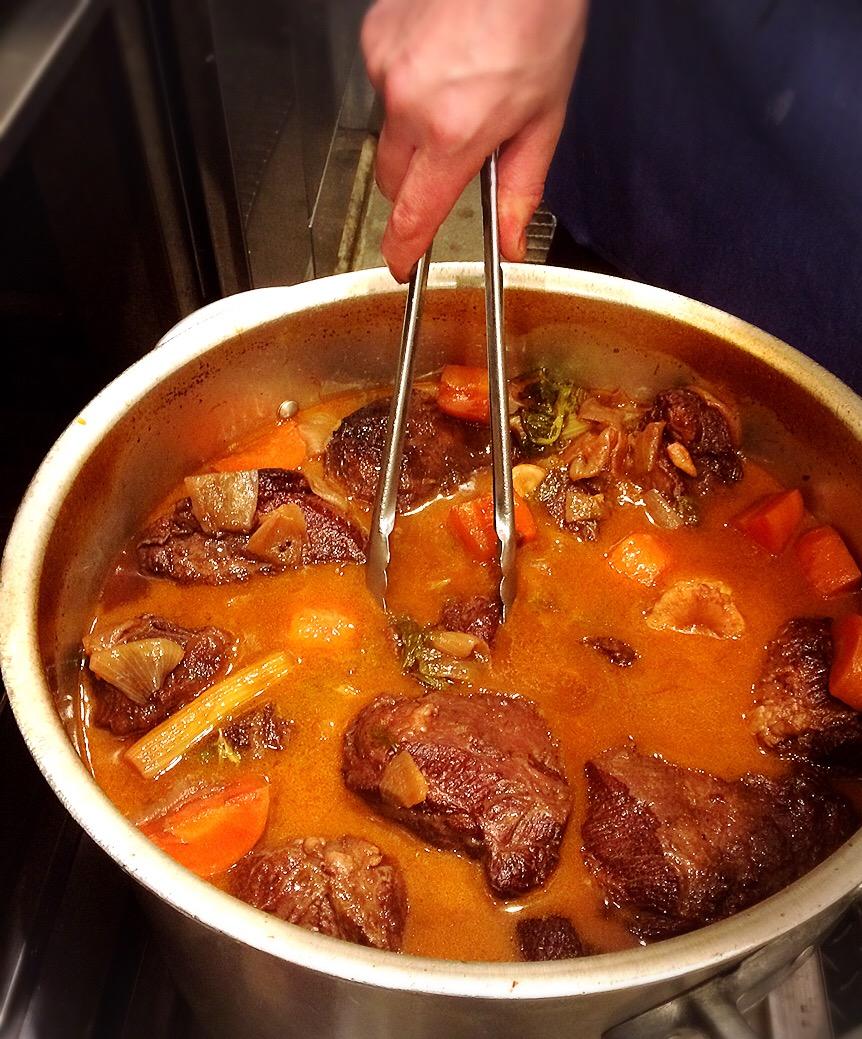 ランチタイムにも大人気! 『和牛ほほ肉の赤ワイン煮込み』 大きな鍋でじっくり柔らかく煮込んでます(^^) 12時ランチタイムオープンです! ご来店心よりお待ちしてます\(^o^)/