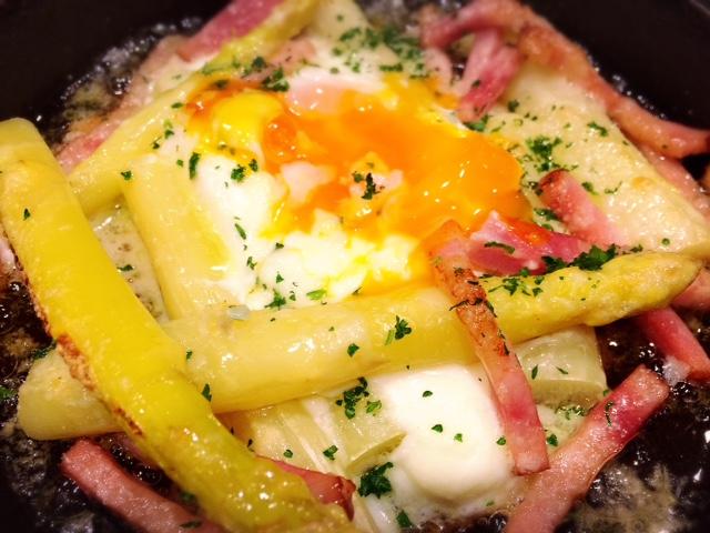 半熟玉子がアスパラに絡んで◎ワインがすすみます!