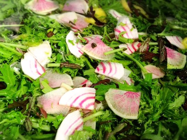 今日の鎌倉野菜は水菜、わさび菜、きんび人参、紅芯大根などなど。 うずまきビーツが可愛いサラダミックスの出来上がり♪ 前菜盛り合わせやサラダにたっぷり使います! 17時ディナータイムオープンです!