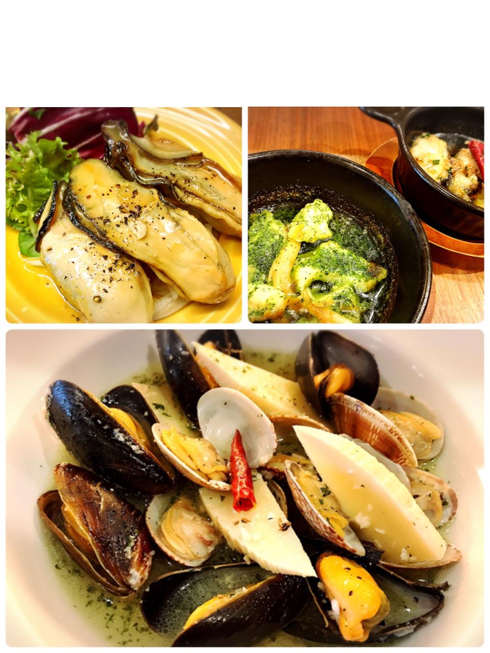 「本日の貝と魚介のボンゴレ」や「ツブ貝のガーリックバター」、「牡蠣のアヒージョ」、「燻製牡蠣のオイル漬け」などなど、貝好きにはたまらないラインナップとなっております(o^^o)