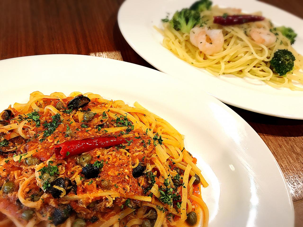 今月のランチパスタ 「しらすのプッタネスカ」と 「海老とブロッコリーのペペロンチーノ」がオススメです(^○^)