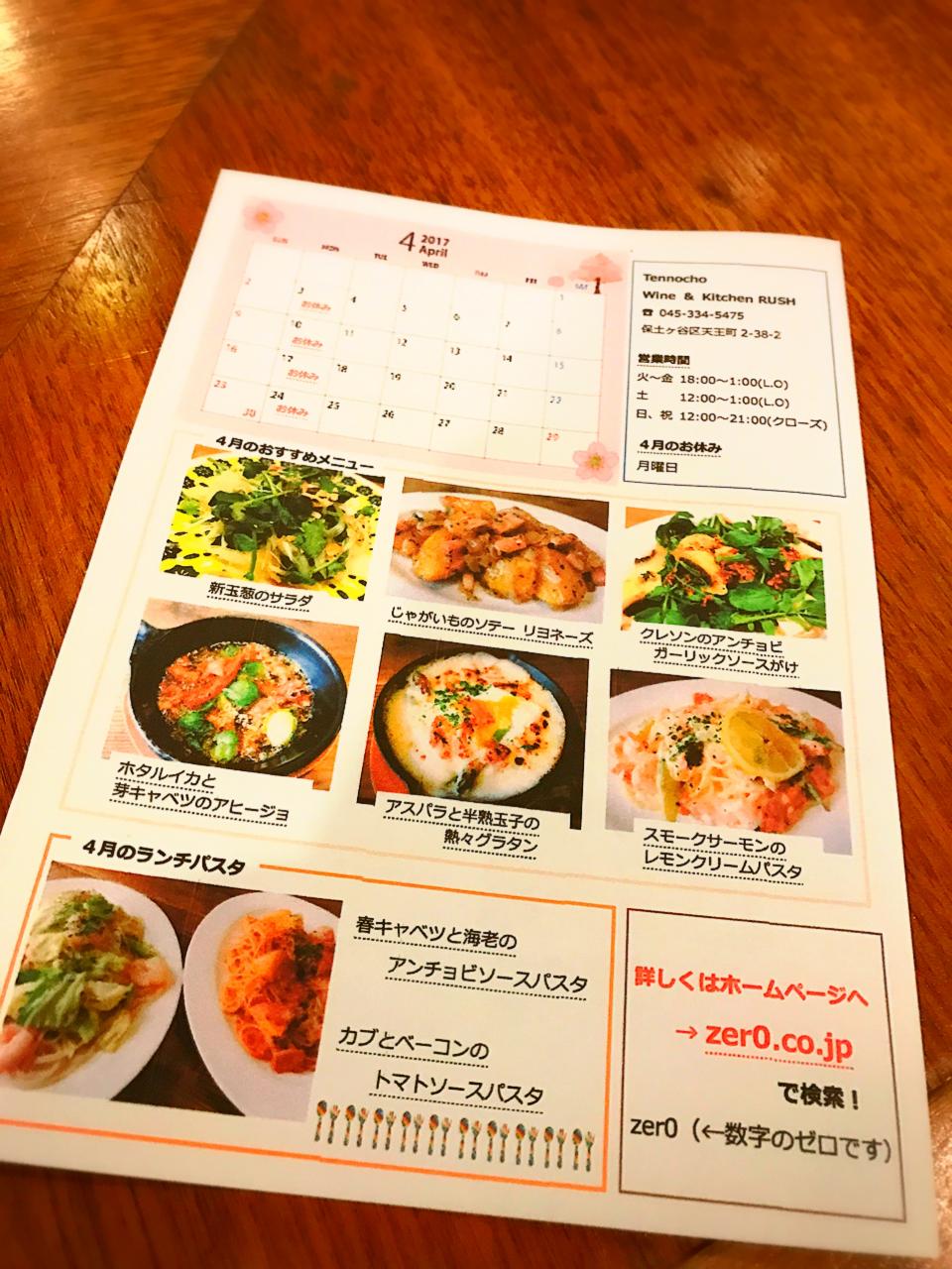 今月もRUSHはおすすめ満載! おすすめメニューには 「じゃがいものソテー リヨネーズ」 「ホタルイカと芽キャベツのアヒージョ」 「アスパラと半熟卵の熱々グラタン」 「スモークサーモンのレモンクリームパスタ」 が新登場♪