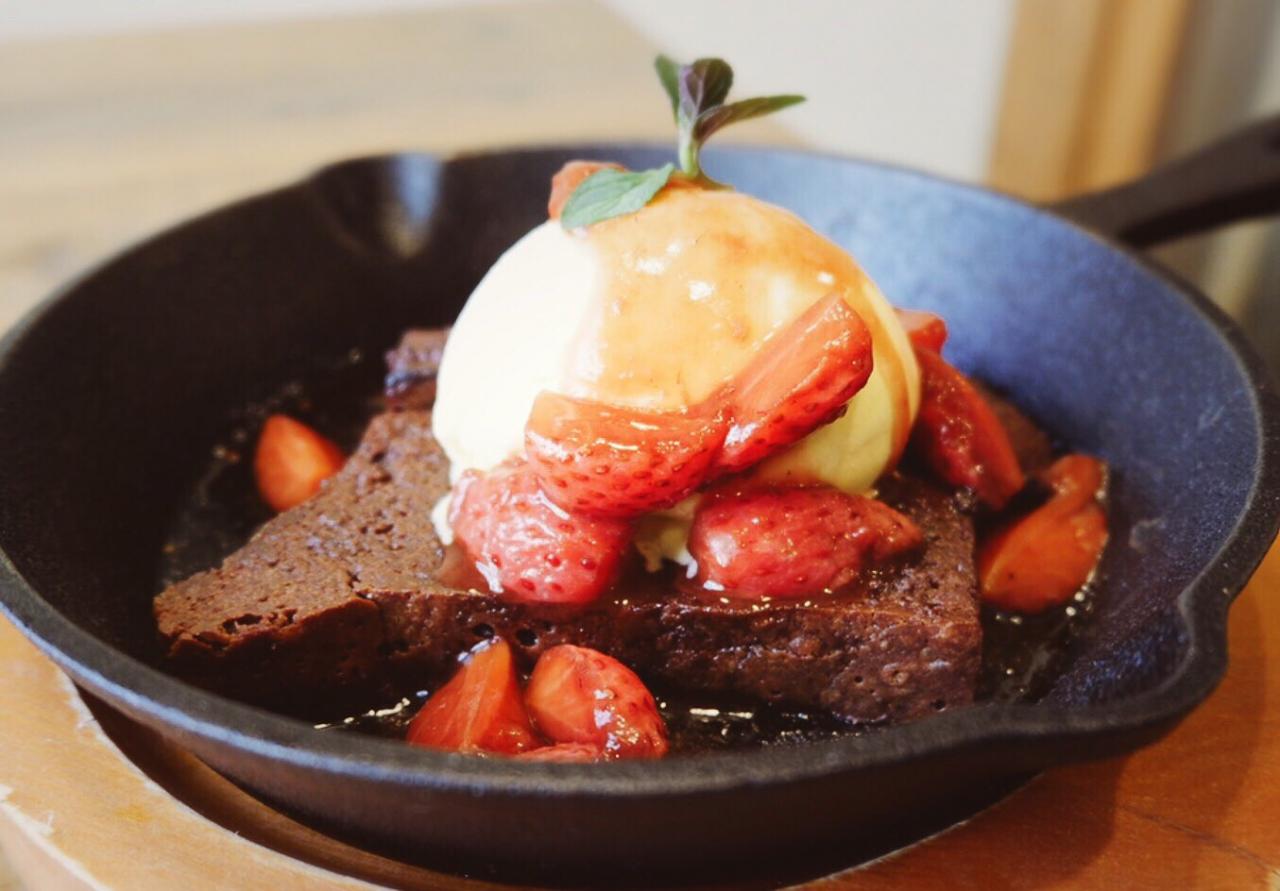 「とろけるホットチョコレートケーキ」 熱々のチョコレートケーキとアイスクリームにいちごソースをかけたスペシャルデザートメニュー(o^^o)