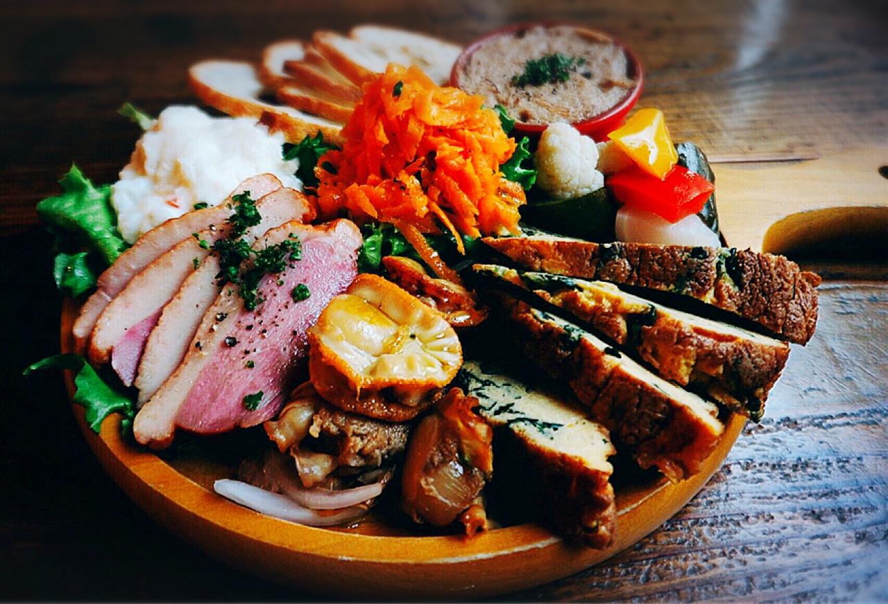 定番のフリッタータやピクルスに加え、豚肉のリエット、鴨のスモーク、ホタテのオイル漬け、ポテトサラダ、キャロットラペが追加♪