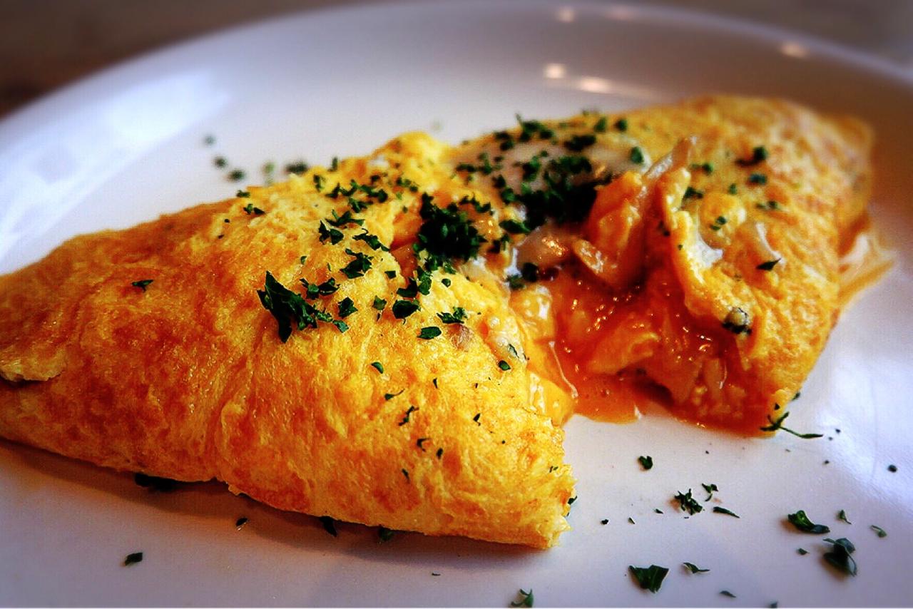 ブルーチーズとマッシュルームを贅沢に使用した、ふわふわとろとろのオムレツです!