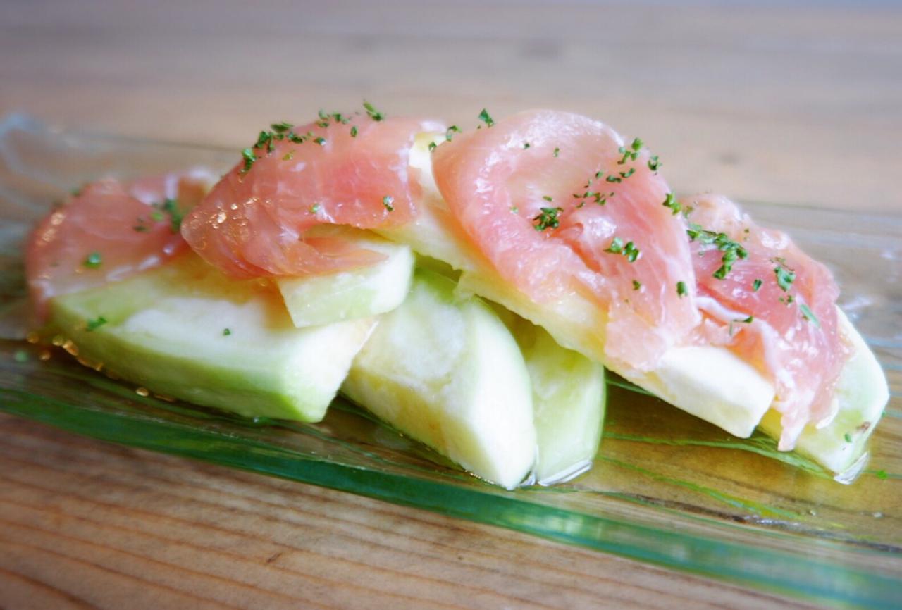 【水ナスのマリネ】 旬の水ナスをシンプルにマリネにしました! 甘みたっぷりで瑞々しい水ナスはまるで果物のよう(o^^o) 白ワインと合わせて是非お試し下さい♪