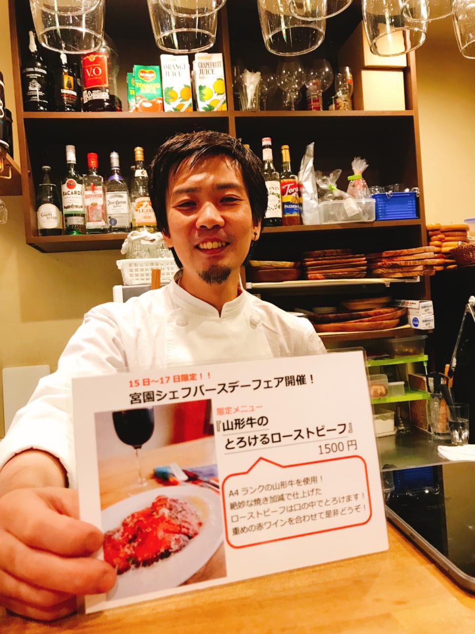 今月は我らが宮園シェフのお誕生月(^^) ということで今日から3日間限定でシェフのバースデーフェアを開催♪ この3日間だけの限定メニュー【山形牛のとろけるローストビーフ】をお出し致します!!