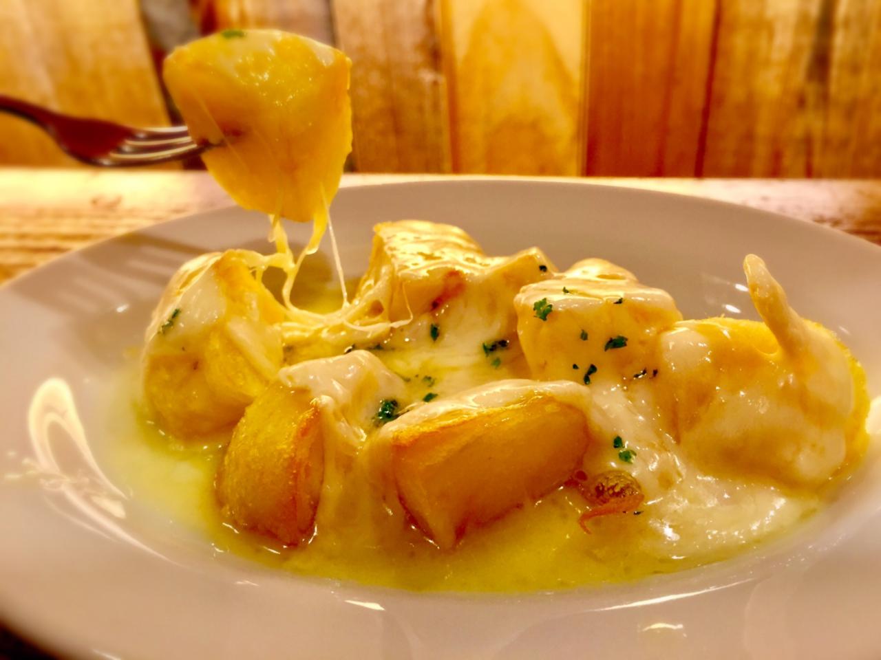 今日の日替わりおすすめメニューは 【ラクレットポテト】 甘みたっぷりのインカのめざめにとろ〜りラクレットチーズをかけた、ワインがぐいぐい進む絶品おつまみメニューです!