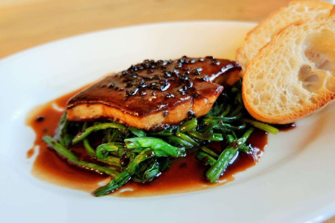 【フォアグラのポワレ】 濃厚なフォアグラを香り高いトリュフソースで! しっかり目の白ワインとよく合います!! 是非是非お試し下さい(^o^)♪