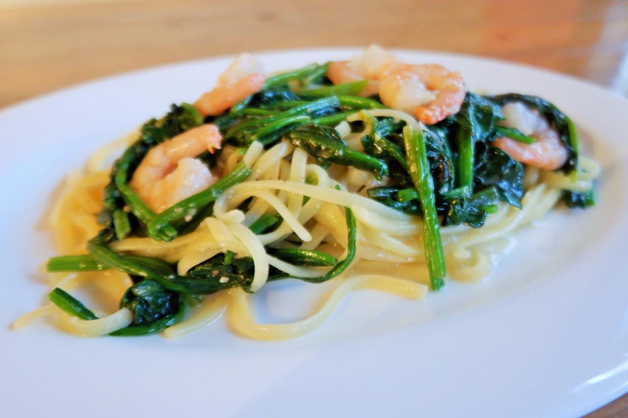 ぷりぷりの海老とたっぷりほうれん草のパスタ!
