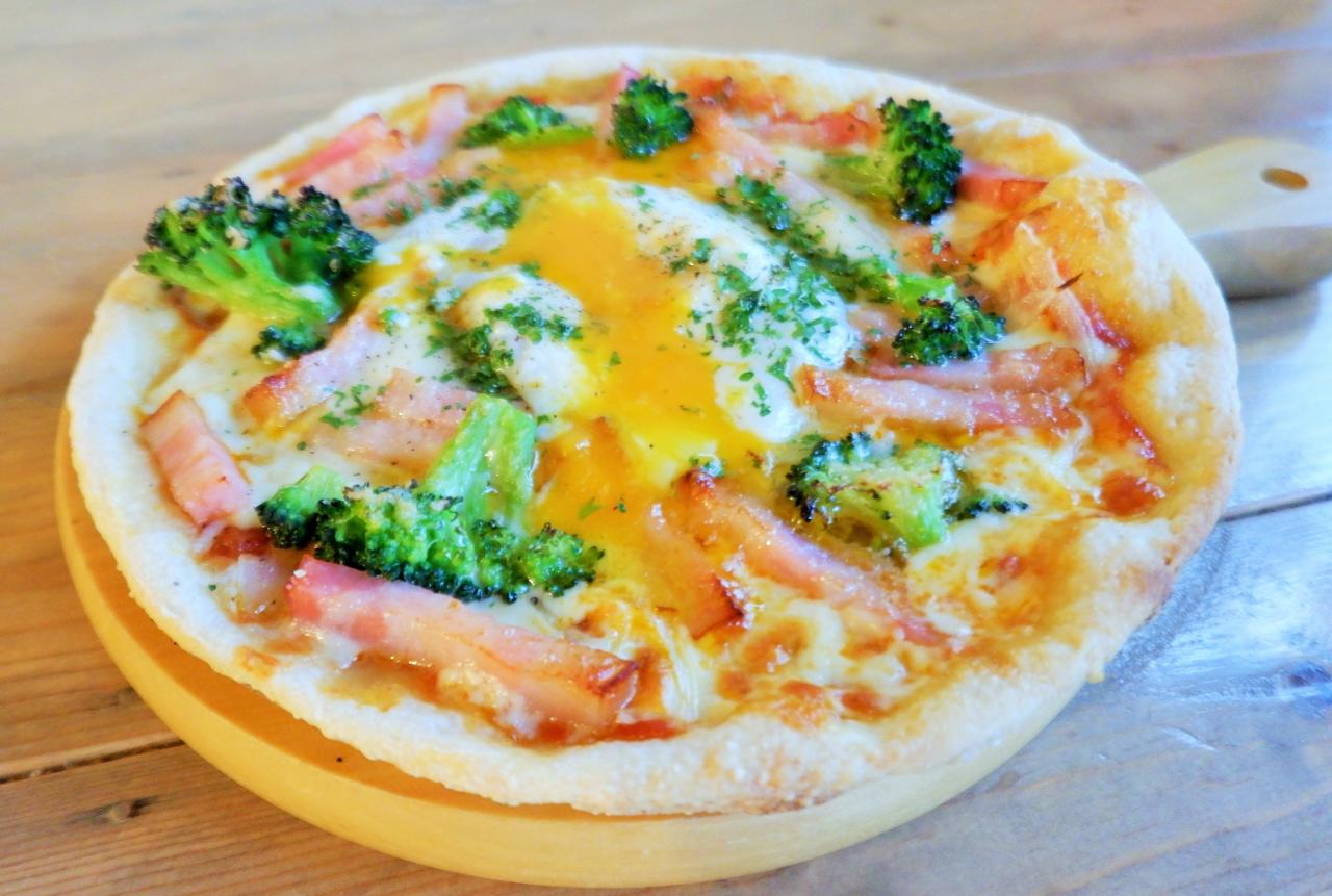 たっぷり具材とチーズ、とろとろ半熟卵をのせて焼き上げた大人気ピザが復活です(*^^*)!