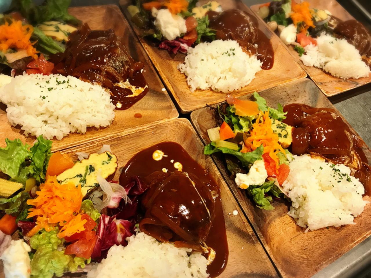 大人気のデミグラスハンバーグにご飯とサラダがついた豪華なワンプレートです(^^)♪