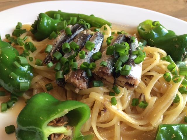 生憎のお天気ですが、今日も11時半から元気にランチタイム営業します*\(^o^)/* 今週の週替わりランチは、オイルサーディンと万願寺ししとうのスパゲティです。鎌倉野菜のサラダ、グリンピースの冷製スープ、ドリンク付きです(^^)