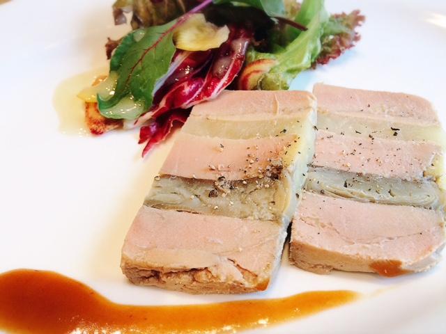 RUSHでは ☆フォアグラのテリーヌ☆ を数量限定で出しています‼︎ フォアグラとりんごとアーティチョークを ミルフィーユ仕立てにした冷たい前菜です!