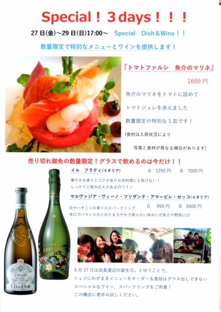 27日は店長渡辺の誕生日。とゆうことで、5月27日(金)〜29日(土)シェフにわがままメニューをオーダー