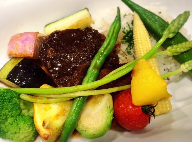 ランチタイムも大人気の『和牛ほほ肉の赤ワイン煮込み』野菜たっぷり!アスパラソバージュも乗ってます!