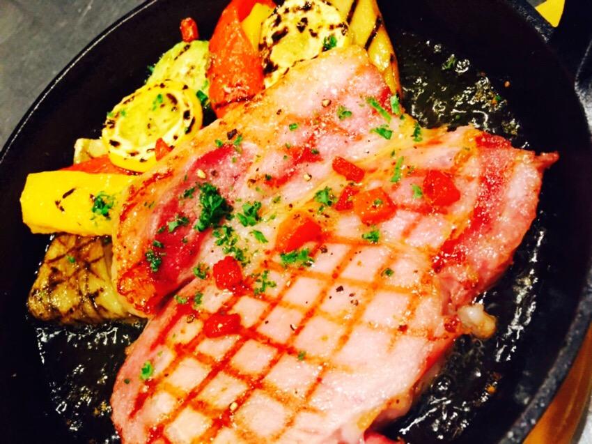 こんばんはー! RUSHディナーオープンしてます! 今日のお肉料理は ☆ハムステーキグリルベジタブル添え☆ です(^-^) ハムステーキの塩気と野菜の甘さが◎ 数量限定なのでお早めに‼︎