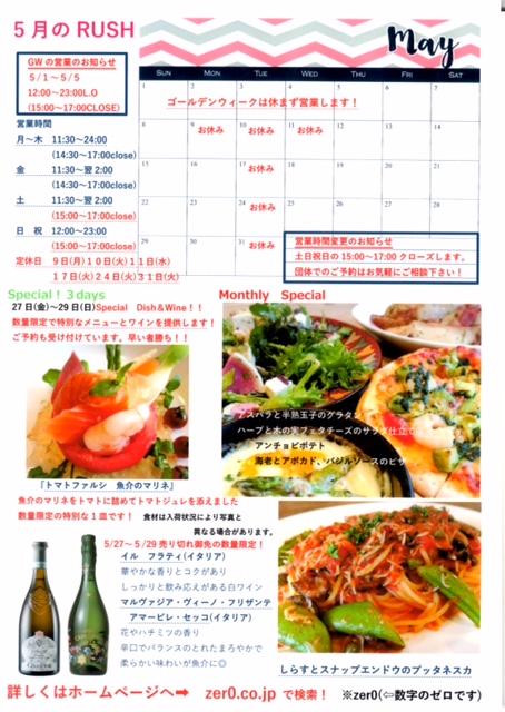 5月の後半になりました。 5月の大人気メニュー『しらすとスナップエンドウのプッタネスカ』はランチタイムにも食べられます(^^) 是非お試し下さいm(__)m