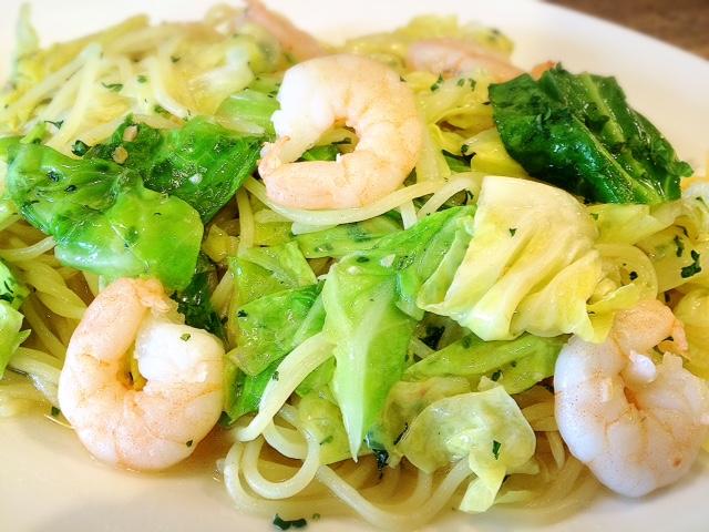 週替わりパスタは『海老とキャベツのアンチョビスパゲティ』です! ぷりぷりの海老と柔らかいキャベツ、ガーリックとアンチョビソースのスパゲティ。是非お試し下さいm(__)m