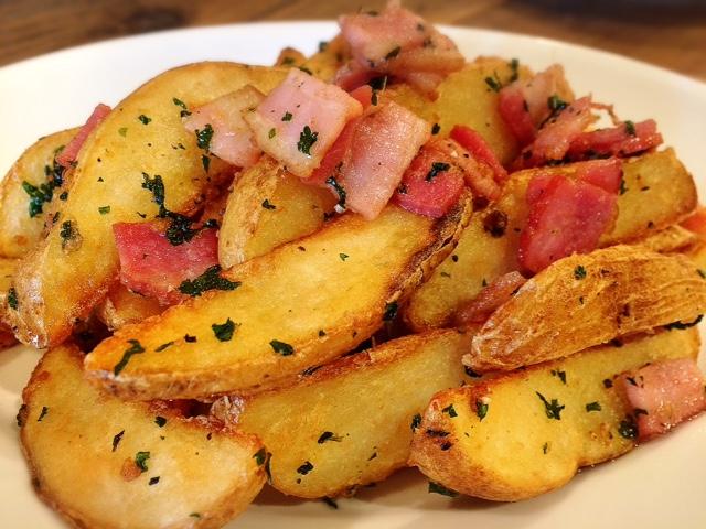 今日から新メニューが続々登場です\(^o^)/ 『アンチョビポテト』 ほくほくのポテトにベーコンとアンチョビソースを絡めた1皿。お酒に合いますよ(^^)