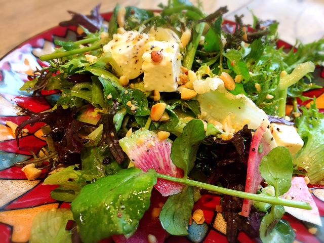今月のおすすめメニュー『ハーブと木の実とフェタチーズのサラダ仕立て』 塩水で熟成させる為しっかりとした塩気とコクのあるギリシャのチーズ フェタチーズをハーブとオリーブオイルでマリネしてたっぷりの野菜と木の実と一緒にサラダ仕立てに。 ワインによく合います!